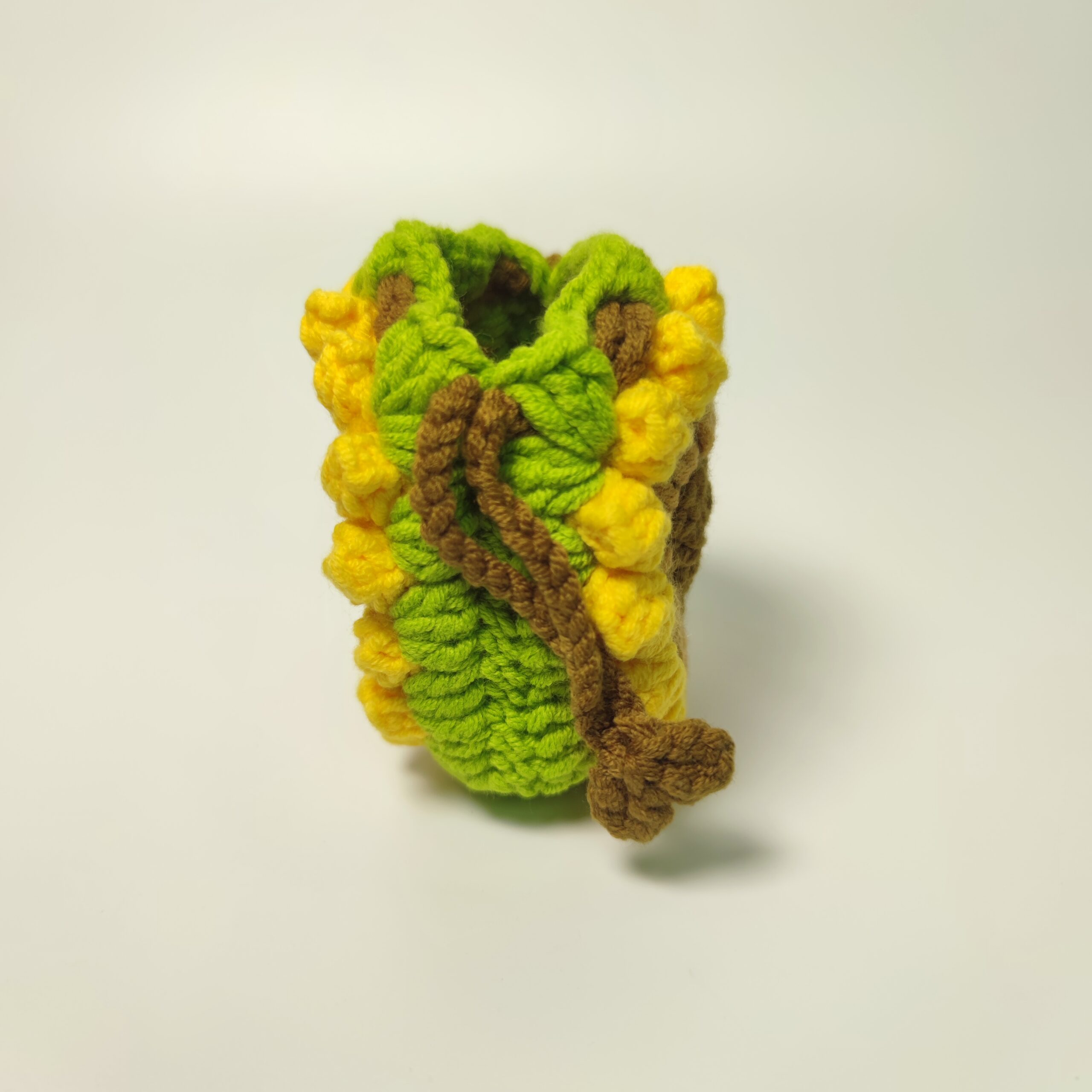 This charming coin pouch is handcrafted with soft yarn, shaped like a vibrant sunflower—featuring fluffy yellow petals, a textured brown center, and a fresh green border. It’s compact (perfect for coins, keys, or small trinkets) and comes with a sturdy braided strap for easy carrying. Lightweight, cute, and durable, it’s a sweet accessory for daily use or a lovely handmade gift.